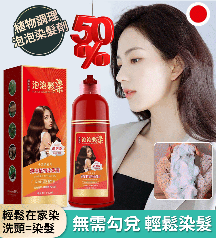 11分鐘前大紅瓶親膚溫和泡泡染髮 - 【熱銷精選】買1送1★$899(低至449/入)